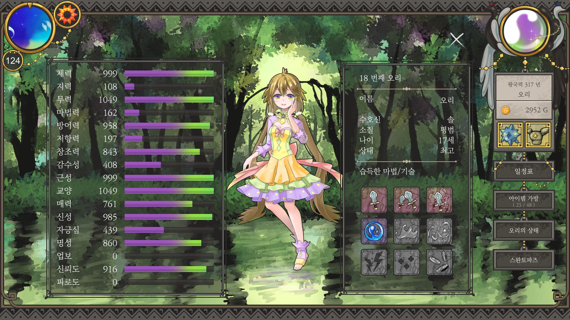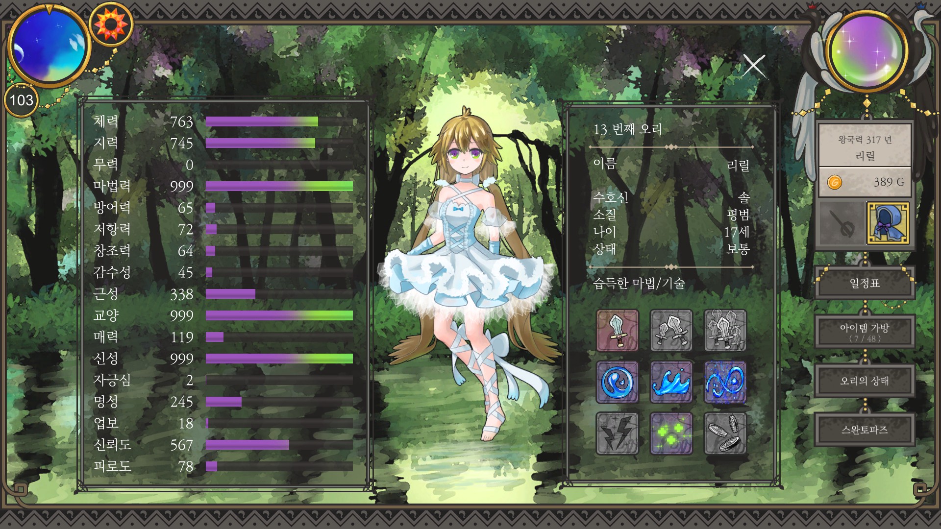 명성은 체력 마법실력 무력 엄청 올려서 사람들 구하거나 대회 우승해야 올릴 수 있는데