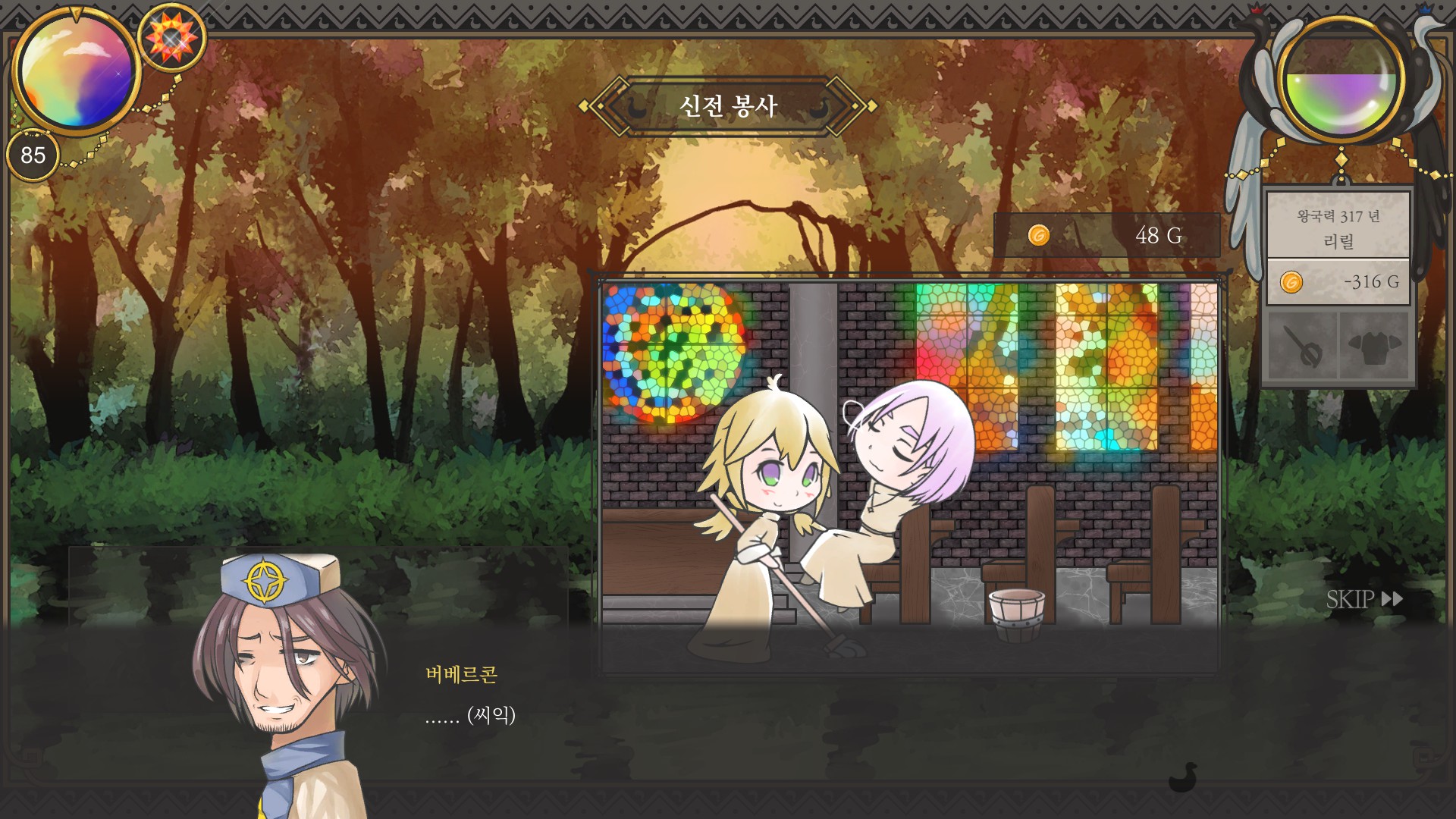 + 이 상태로 턴 남으면 신전, 성가대, 서빙알바만 반복