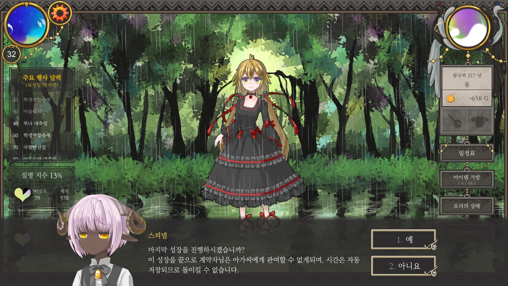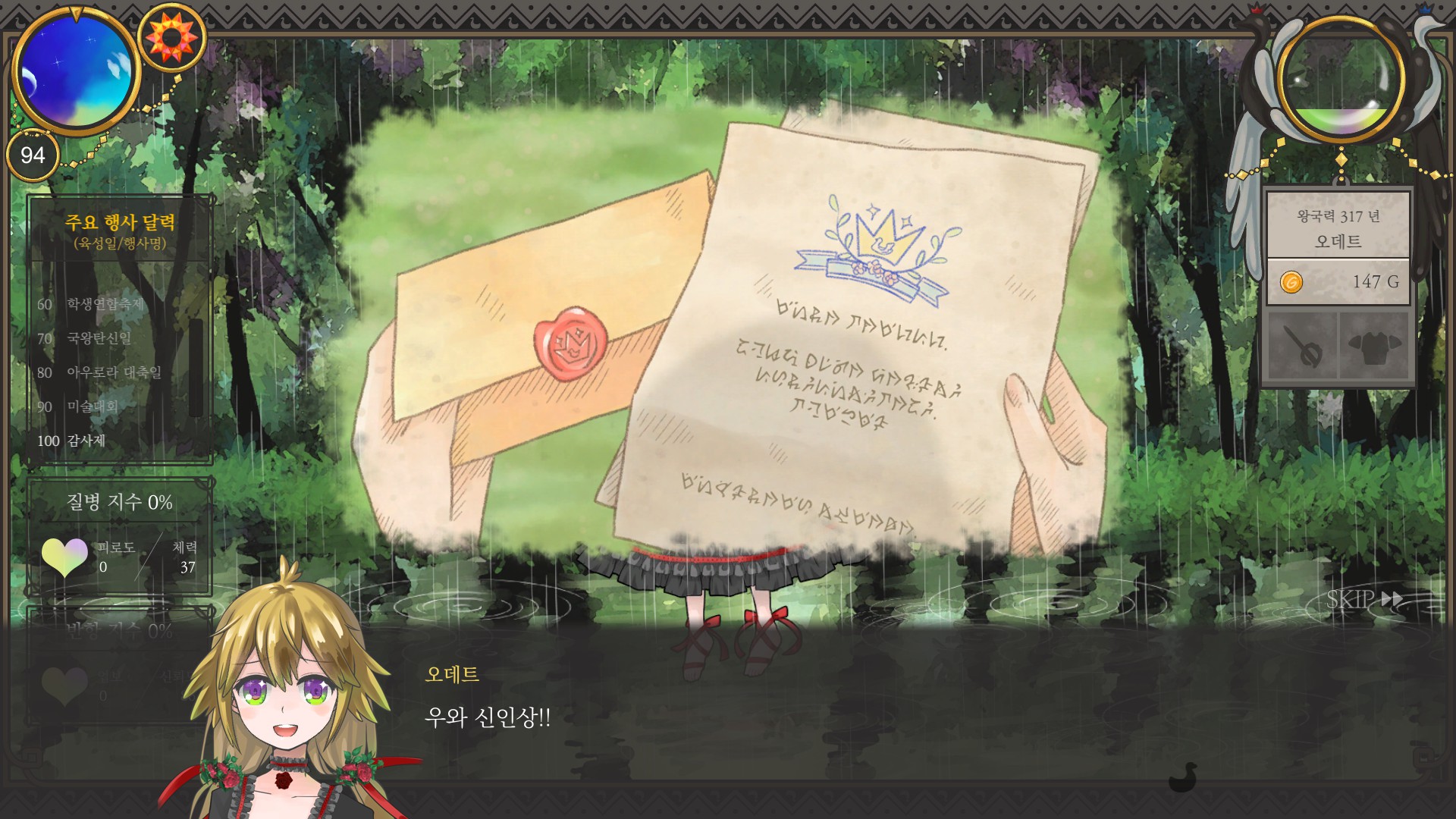 지금까지 플레이하면서 맨날 후반은 나들이로 채웠는데도 단 한 번도 예언이벤이 뜬 적이 없었음