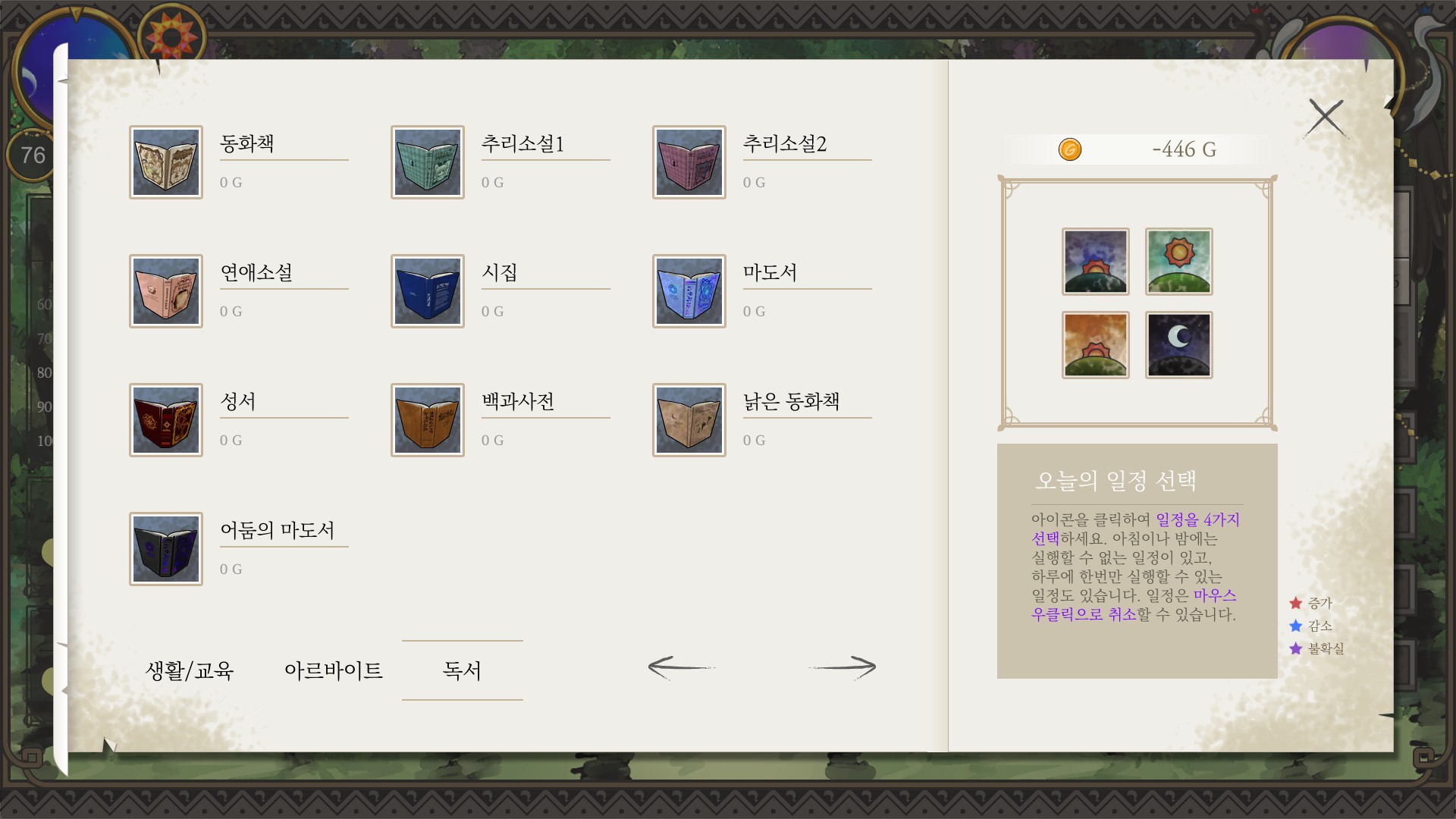 사실 게임 초반에는 알바/수업 가느라 독서 기능을 거의 안 이용했는데