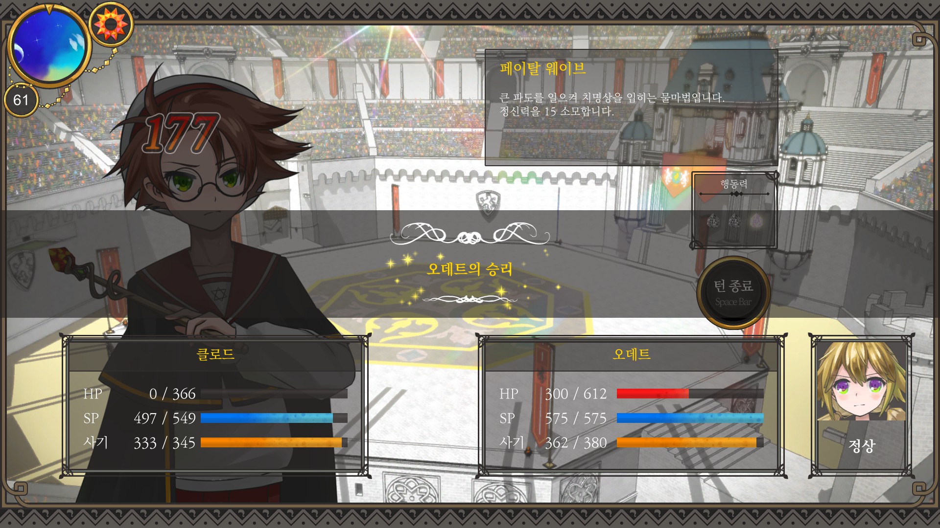 무엇보다 1회차에 있었던 검술대회 우승 갑옷을 못 받았어서 훨씬 힘들었었네요