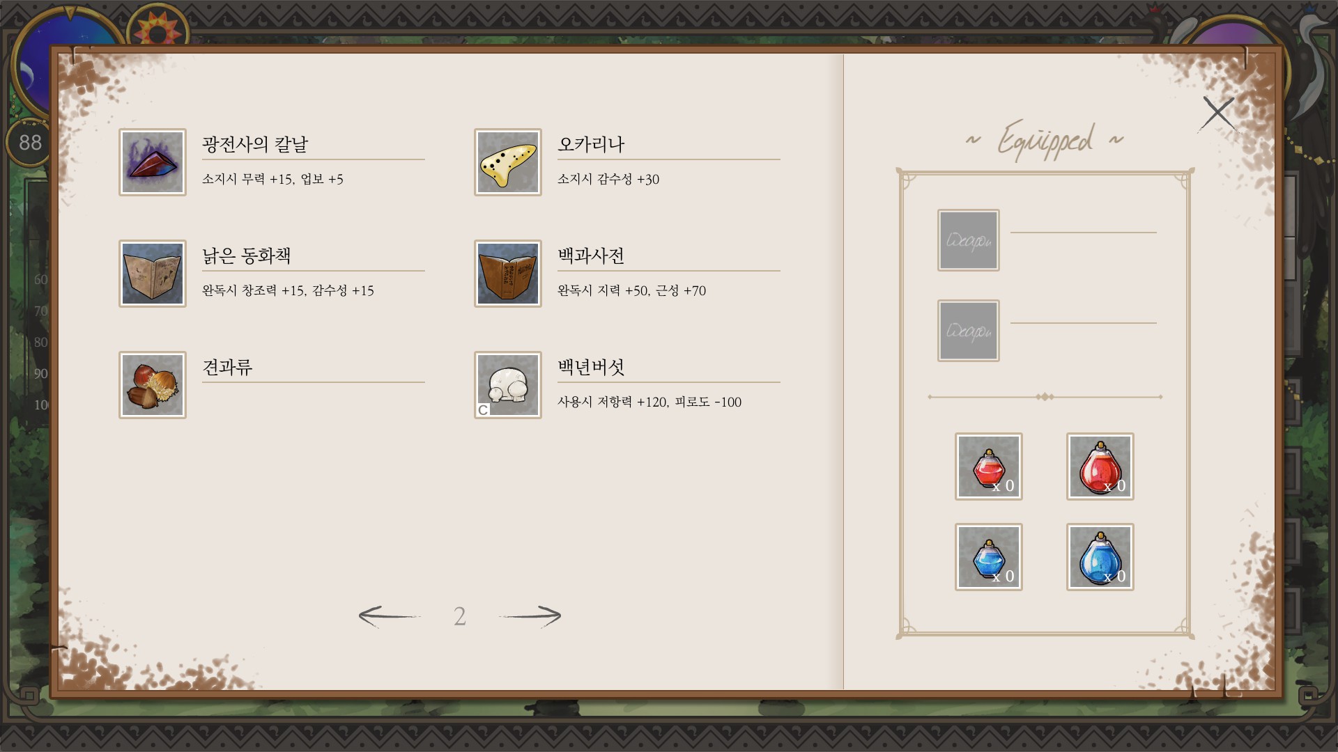 그리고 스팀 가이드를 보다가 백과사전을 완독하면 탐험 시 희귀 버섯을 찾을 수 있다는 정보를 입수