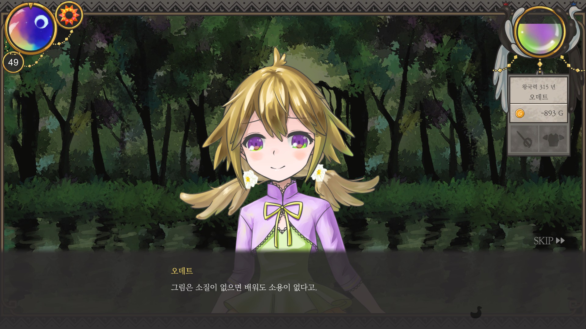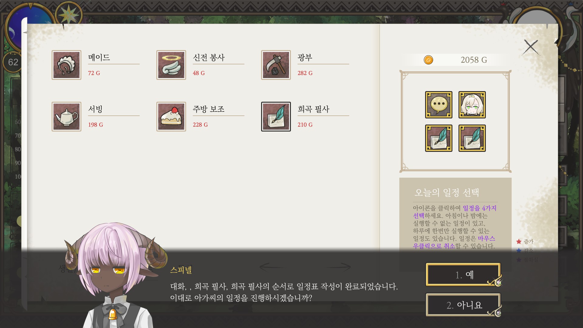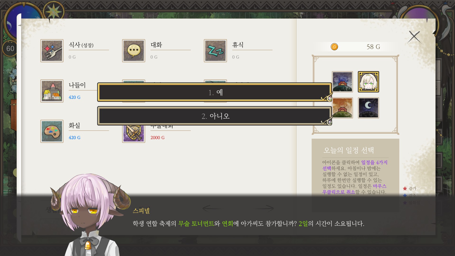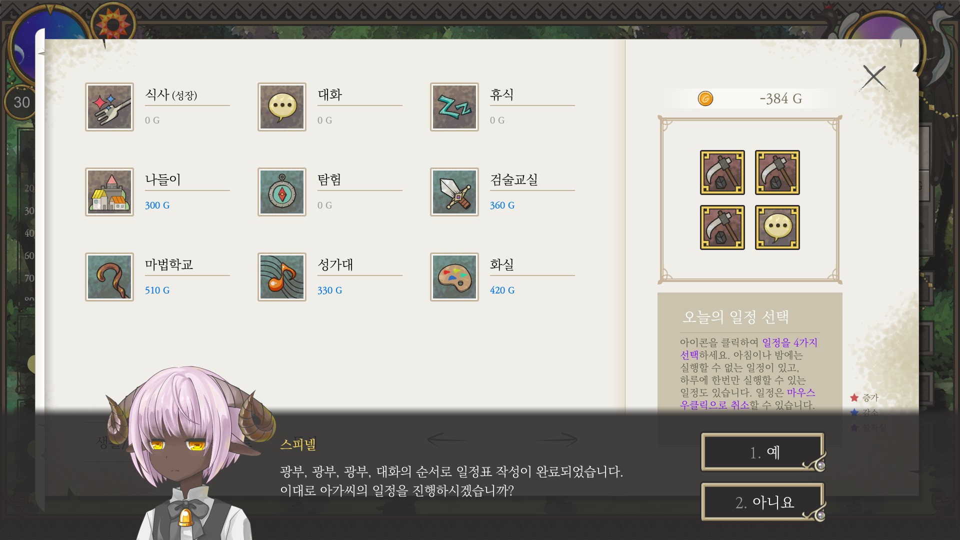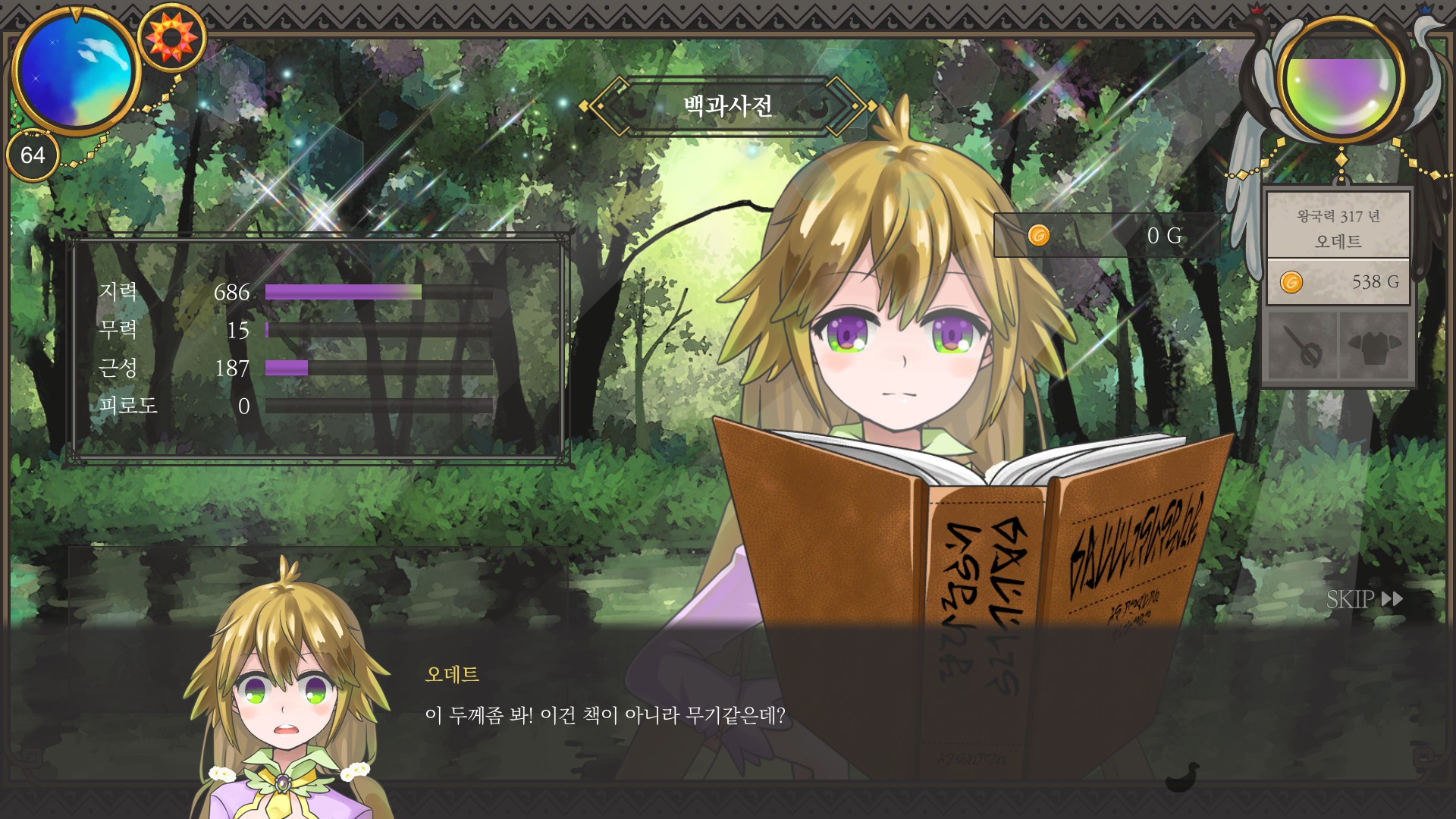 지력 요구수치 + 책값 + 모험으로 얻어야 되는 부분이 있어서 어느 정도 사회활동(?)을 하기는 한다