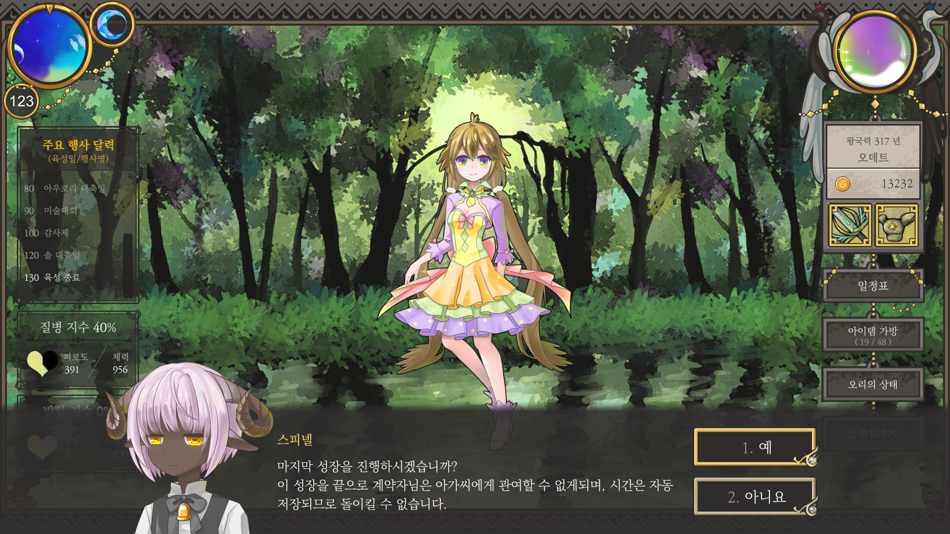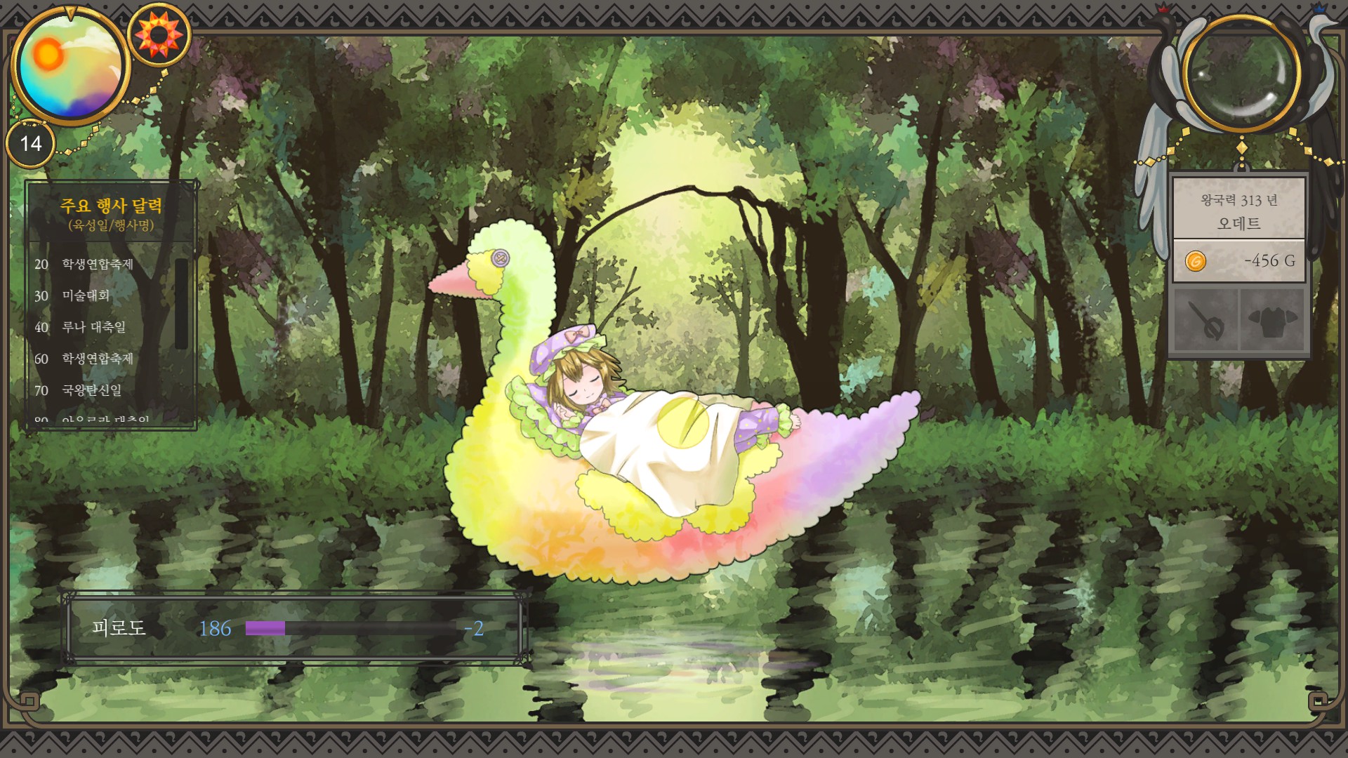 15. 80일까지 모험 다니면서 행동력 4까지 올리기 (+70일 축제로 피로도 -100)
