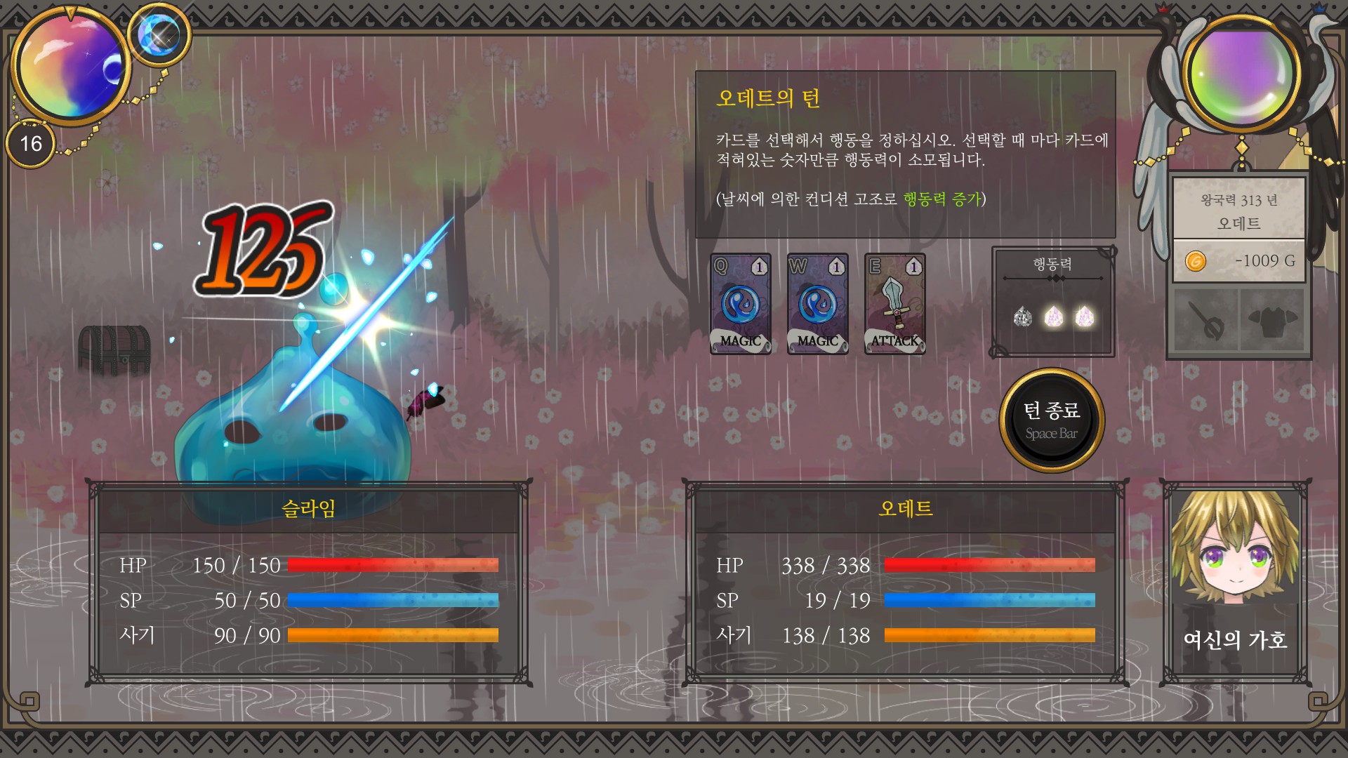ㅋㅎ 멍청하게 반대속성 날씨일 때 전투 시작해버림