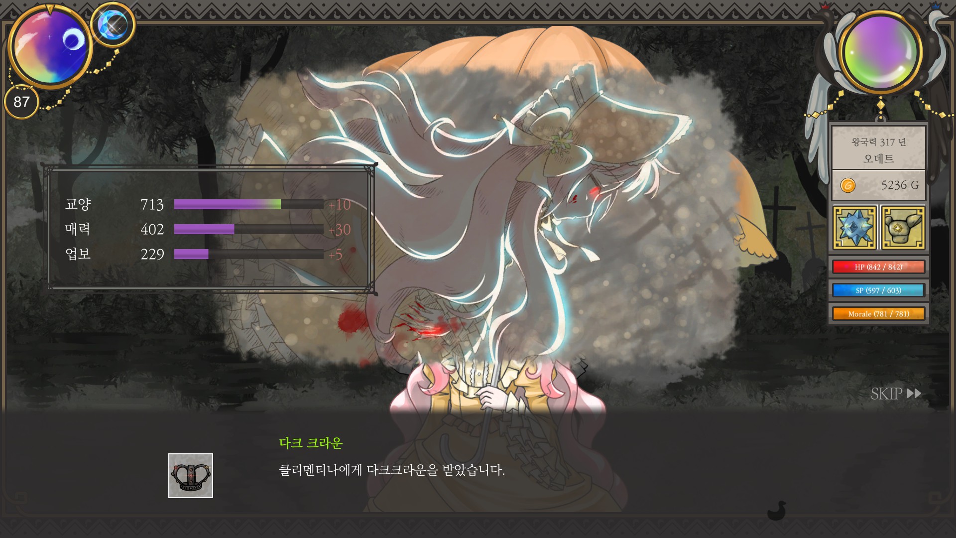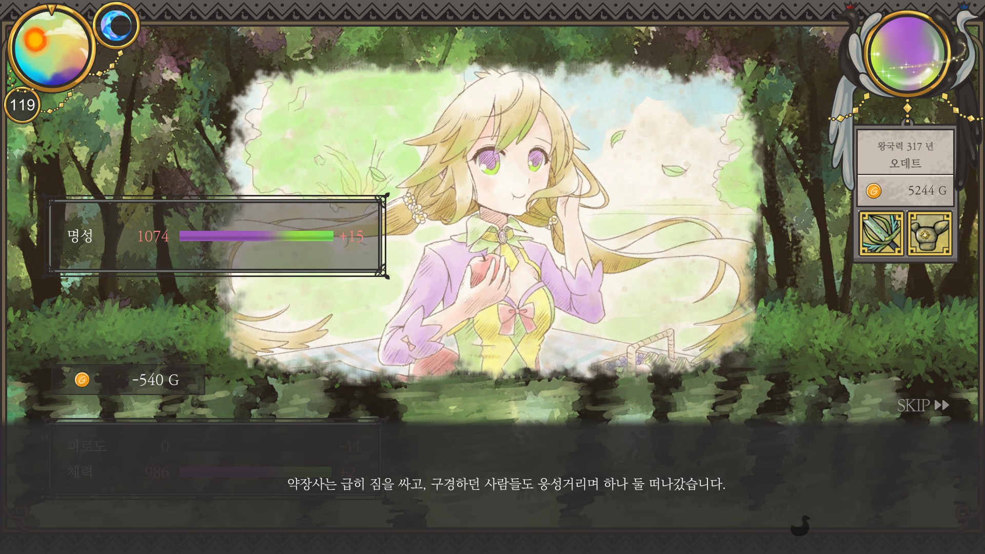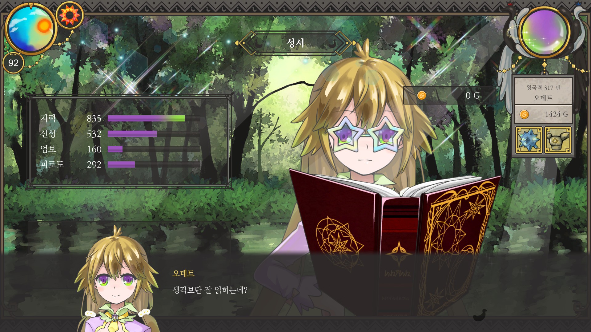 재상엔딩에 지력 900 조건이 있어서 평소처럼 마검사루트로 돈 버는 게 쉽지만