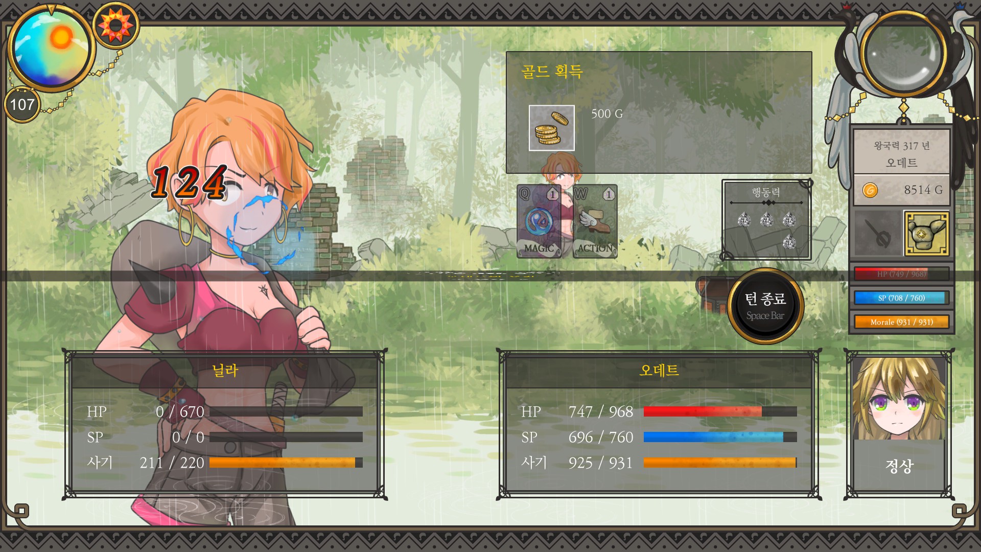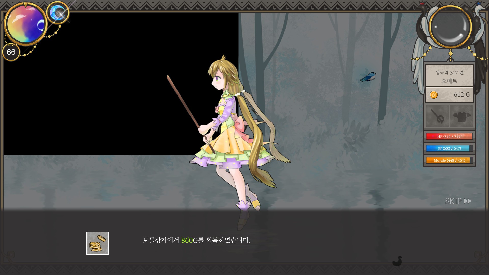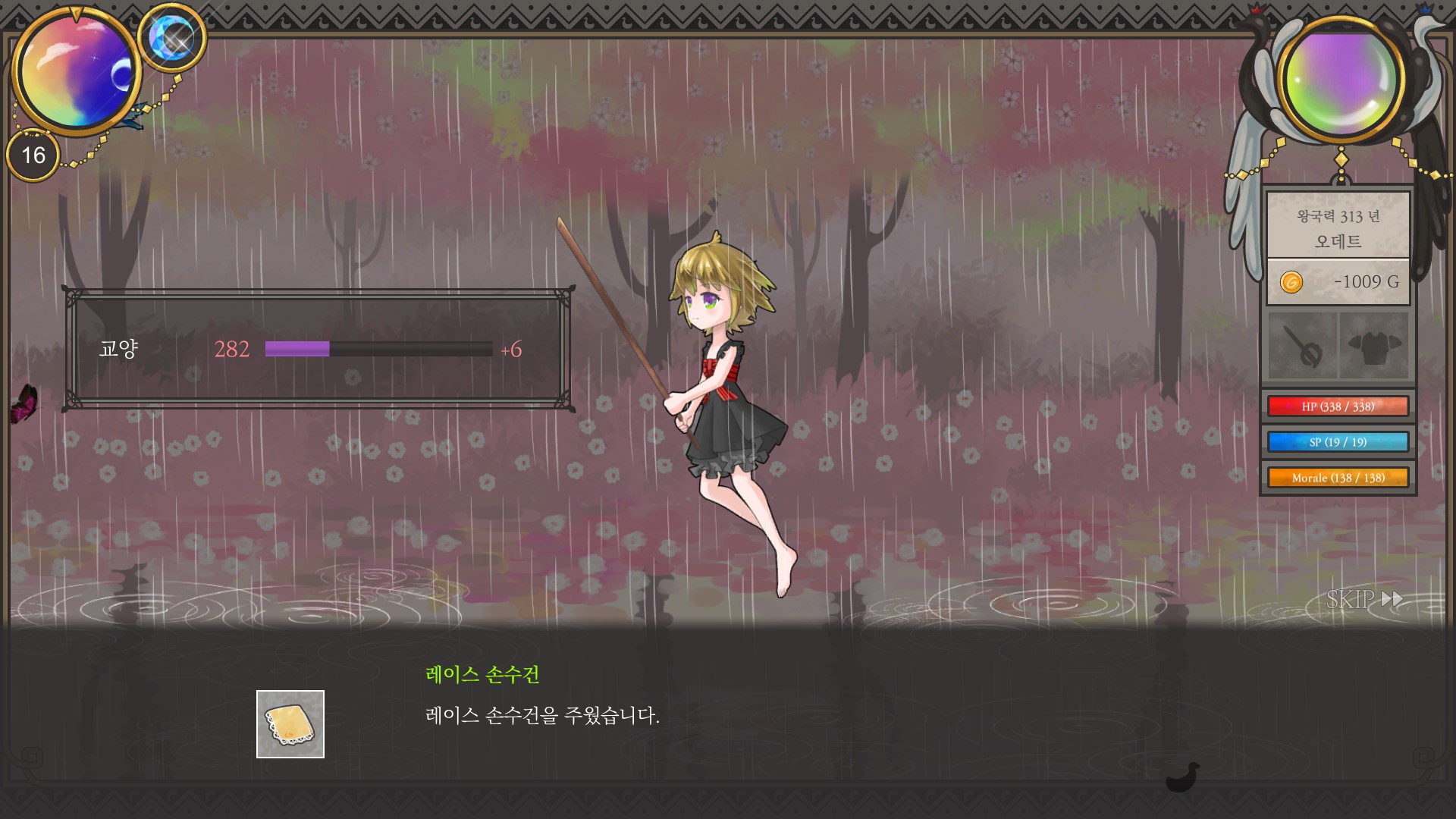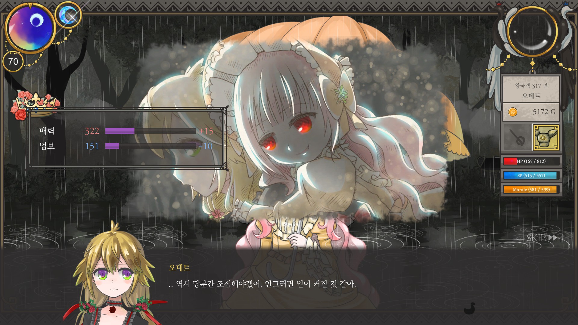 재상엔딩에 지력 900 조건이 있어서 평소처럼 마검사루트로 돈 버는 게 쉽지만