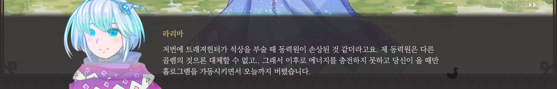 가끔 이렇게 레어 대사 뜰까봐 스킵을 못하겠어