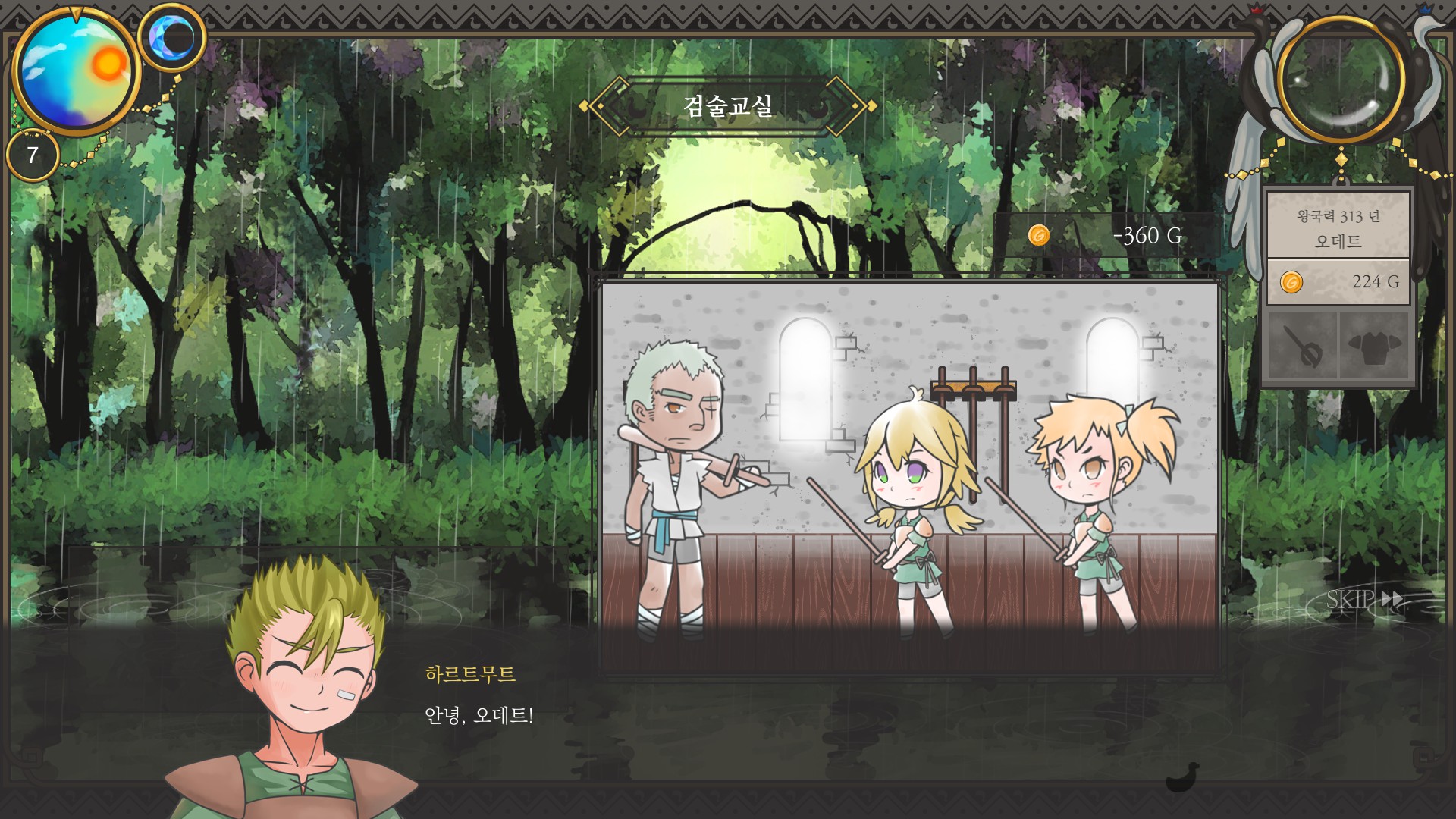 4. 서빙알바 계속 하면서 주방보조 열기 + 검술교실 가기 (학생대회 직전에 돈을 200g 정도 갖고 있는 게 좋음)