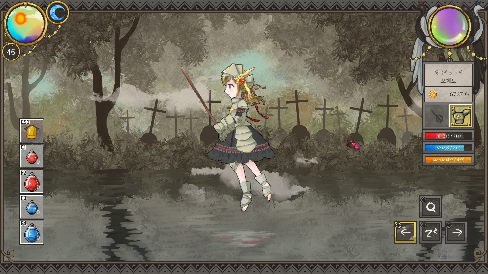 0.5 마나 속성 맞춰야 되는 엔딩일 경우 일일 세이브 + 4회 식사 옵션으로 그날치 마나 미리 보고 먹기