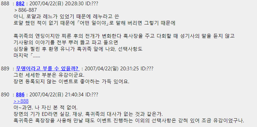 기타 엔딩이라고 해도 각 잡고 해야 하는 혈하왕 독살왕 같은 건 아니고 조금씩 특수 스크립트 확인하는 용도로 쫌쫌따리 플레이하는 느낌처럼...