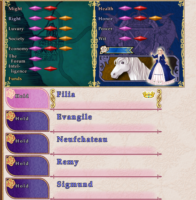 명예치 1 ---> 기사를 비롯한 캐릭터들은 선물을 보내면 명예가 낮아져도 실종을 막을 수 있음,